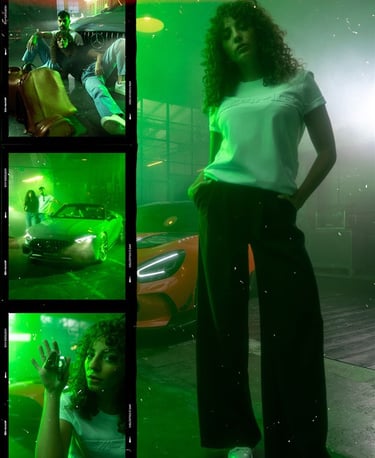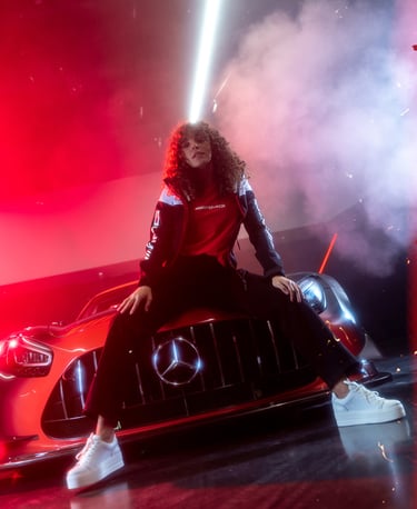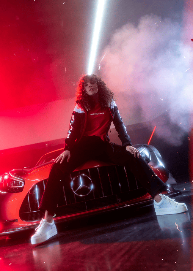 Our approach: We played with intense red and green lighting to symbolize the brand’s dual essence. Red channeled AMG’s raw power and passion, while green nodded to its engineering precision and the legendary “Green Hell” Nürburgring roots. The result: a visual identity that balanced aggression with control—power with purpose.